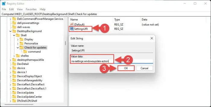 一旦完成,您可以关闭注册表编辑器并继续检查“检查更新”桌面的上下文菜单。