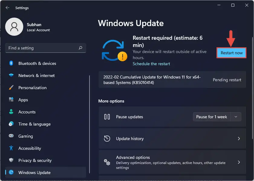 - 现在开始下载和安装更新。当它完成时,单击现在重启。