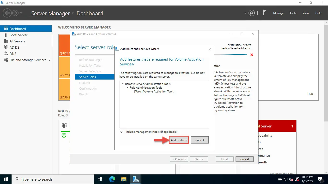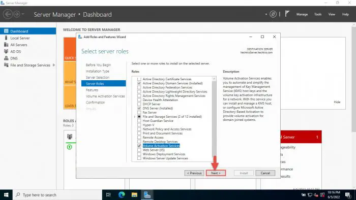 您可能已经熟悉了,公里主机服务器需要使用CSVLK被激活,可以获得的微软的批量许可服务中心。一旦你,继续以下步骤部署在Windows server 2022公里服务器: