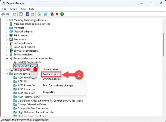 确认行动 再次右键单击音频设备,点击“使设备。”